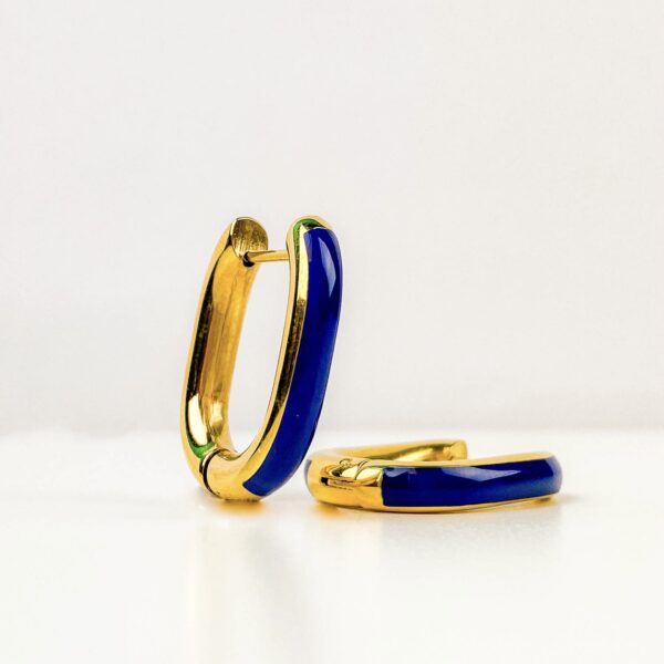 Odkryj nasze wyjątkowe kolczyki typu hoop ze stali szlachetnej w pięknym złotym kolorze z emalią granatową.