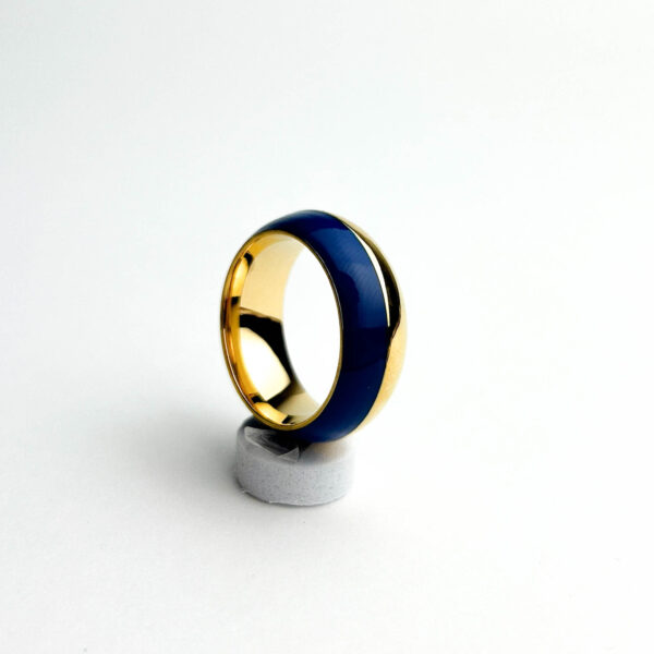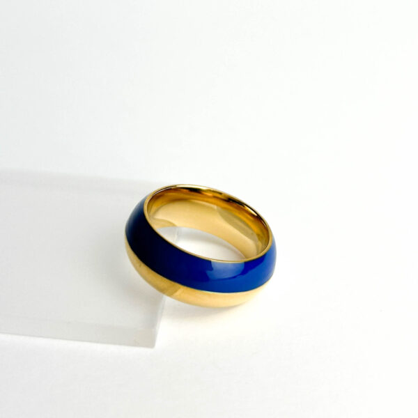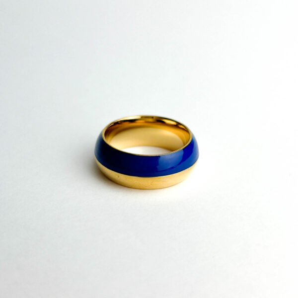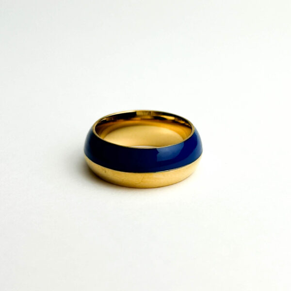 Odkryj nasz wyjątkowy pierścionek ze stali szlachetnej w pięknym złotym kolorze z emalią granatową.
